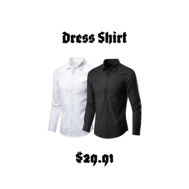 Dress shirt in black or white. Click on contact us for ordering or call us.