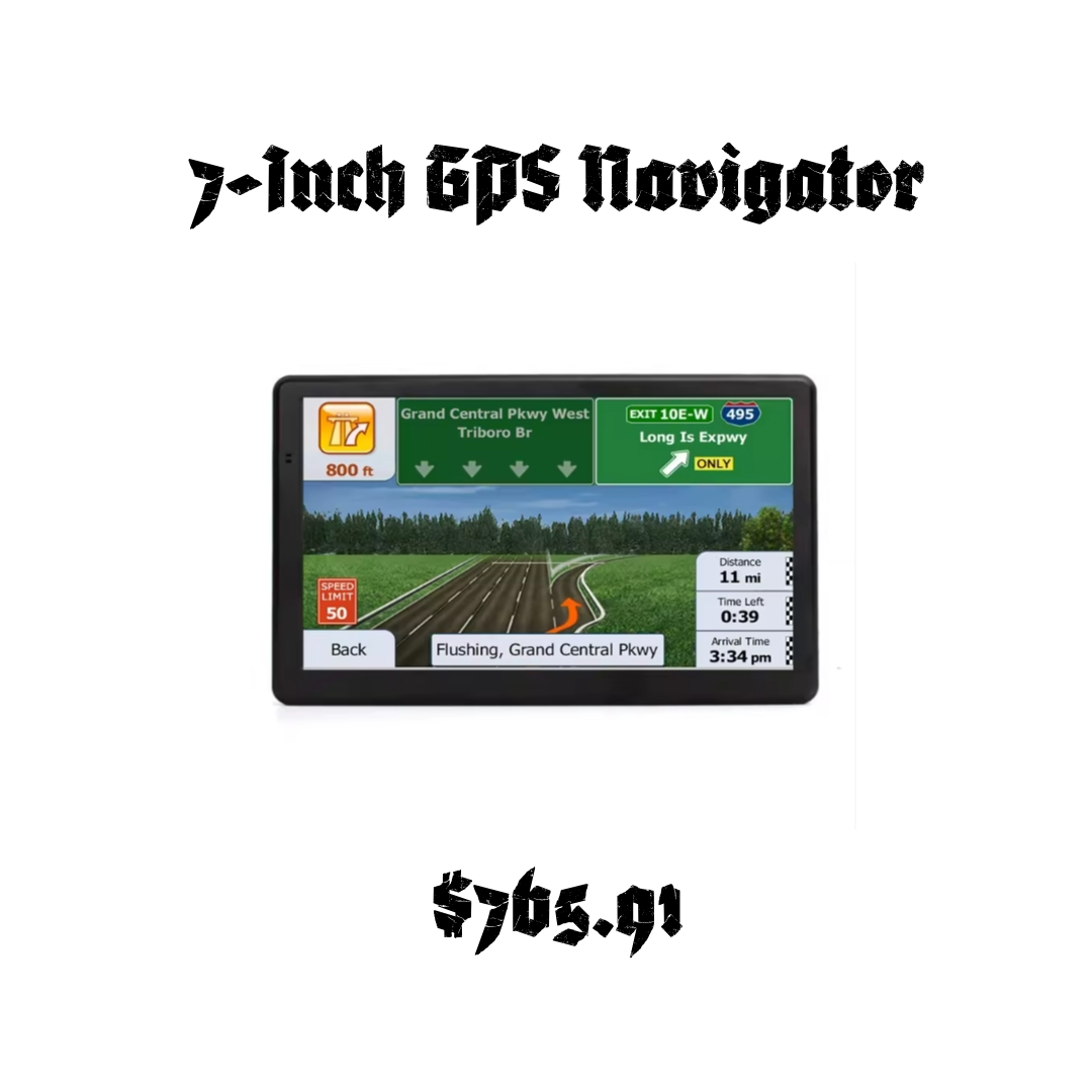 7 inch GPS navigator, high definition, 8G, maps for North America and Europe, navigation to your destination with the best route capability.