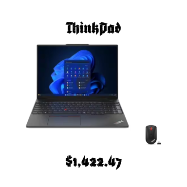 ThinkPad E16, AMD Ryzen processor, backlit keyboard, number pad, fingerprint reader, wireless mouse and privacy shutter for the camera.