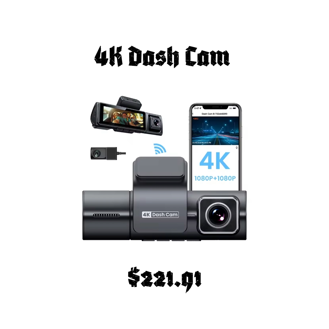 3 camera 4K 2160p, 360 degree dash cam with night vision, DVR, wifi, G sensor, loop recording. Click on contact us to order.